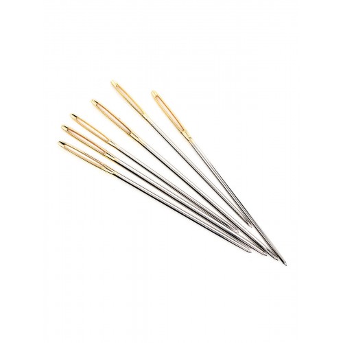 Иглы с золотым ушком для вышивания с закруглённым кончиком 6 шт. № 18-22 в баночке-органайзере “Hemline”.