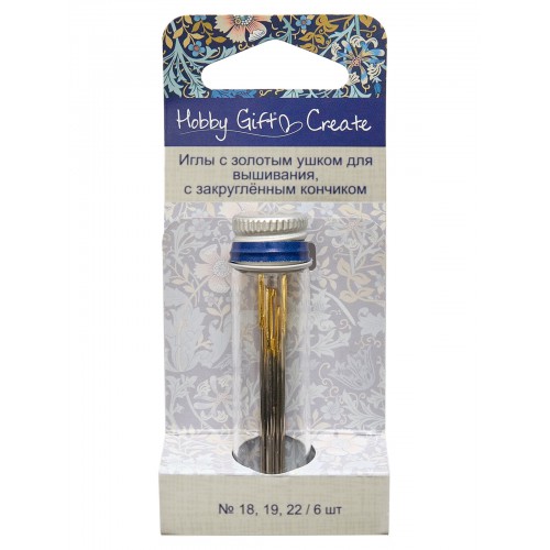 Иглы из премиум серии Hobby Gift Create в красивой стеклянной банкочке с матово-золотой крышкой в эко-упаковке из картона. Иглы с тщательно отполированным и позолоченным ушком для легкой заправки нити. Безупречное качество шитья - нить не перетирается ушком и не рвется. Размеры: № 18, 19, 22 x 2 шт - всего 6 шт. Иглы с закругленным кончиком предназначены для вышивания крестом - нитями мулине, лентами, пряжей на канве, страмине и ткани с полотняным переплетением. Специальное увеличенное ушко позволяет легко продевать нити для вышивания.
